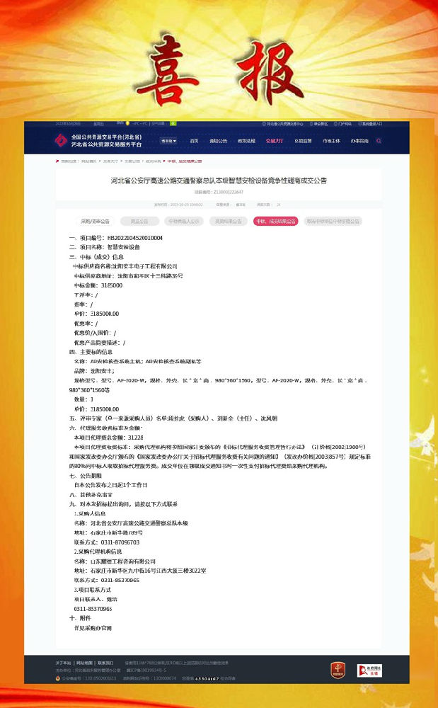 賀:河北省公安廳高速公路交通警察總隊智慧安檢設(shè)備-智慧安檢設(shè)備中標(biāo)!